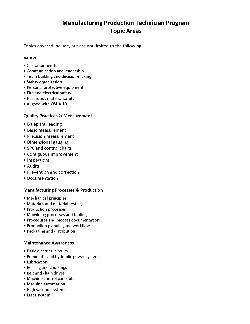 The Manufacturing Production Technician Program Fast Track Option will be delivered and assessed in the order listed below: